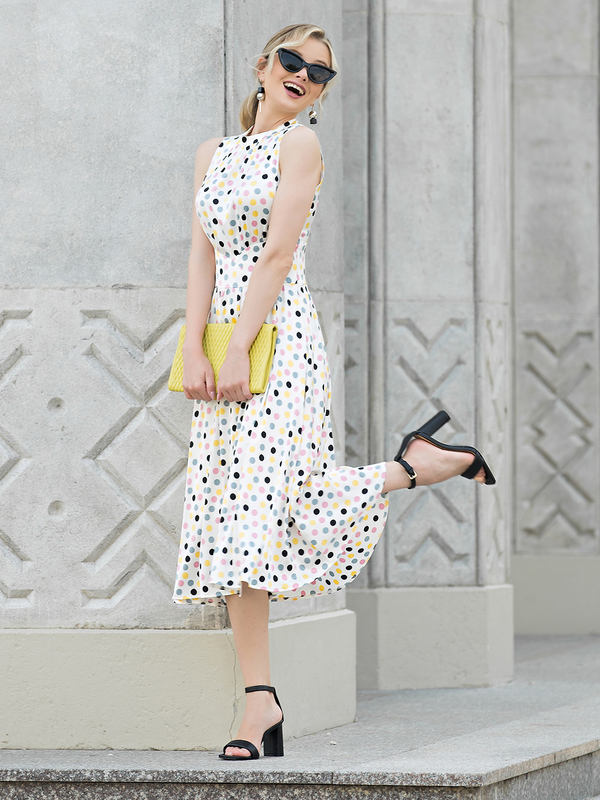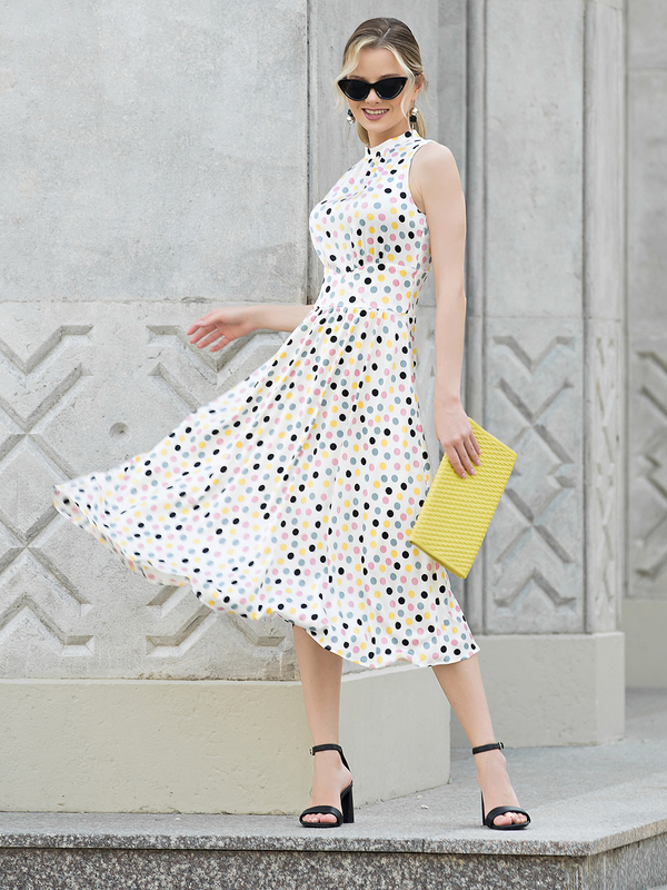 Великолепная модель из шелковистой атласной ткани для любого случая. Лиф - американская пройма со складками по обтачной горловине-стойка. У платья прекрасно сформирован лиф. И еще такое исполнение не требует дополнительных украшений. Талию подчеркивает широкий втачной пояс. Легкая и струящаяся юбка миди-длины превосходна в движении. Рост модели - 170 см.