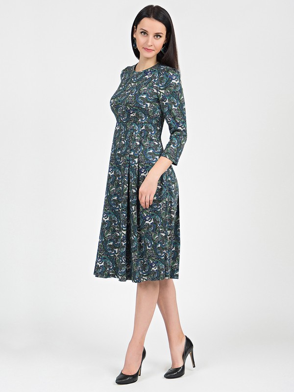 Очаровательная модель А-силуэта миди-длины из уютного вискозного трикотажа. Лиф с округлым вырезом горловины и длинным рукавом. От реза под грудью ниспадает юбка на сборке. Свободный силуэт для комфортной носки. Рост модели - 170 см.
